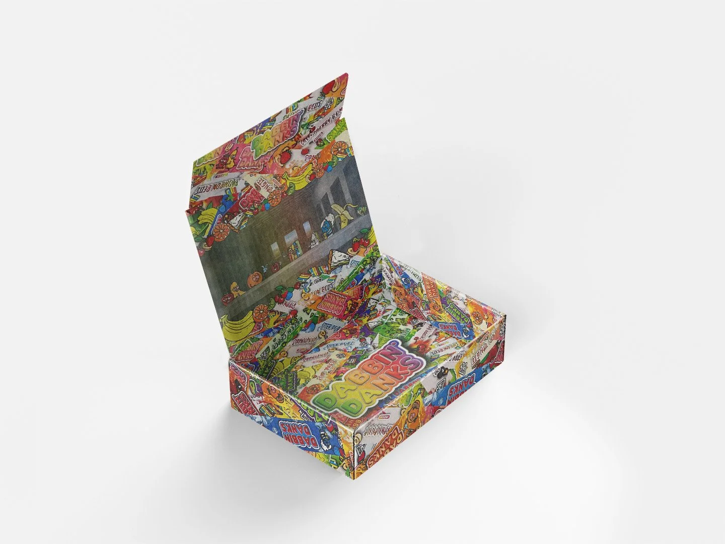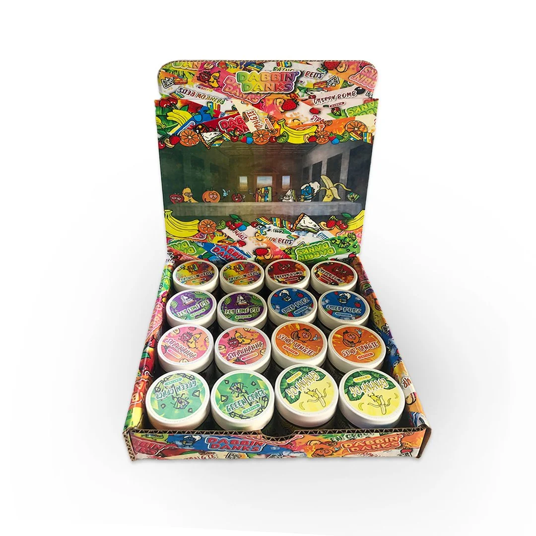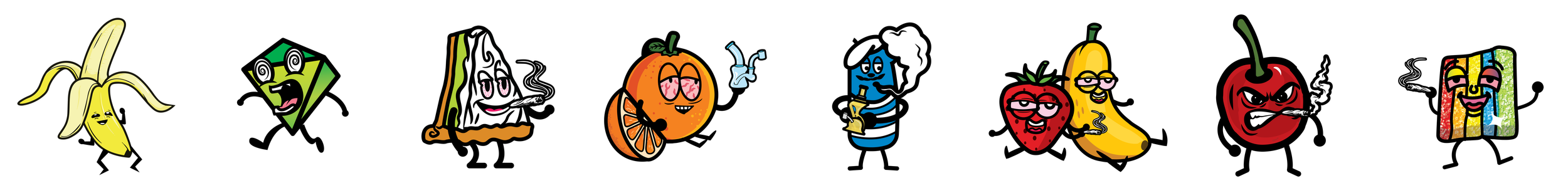 DABBIN’ DANKSs is an extract line under the Upper Echelon brand umbrella. This brand is playful with bold color and whimsical characters. The packaging takes influences from the graffiti sticker culture of vintage skate and surf brands .