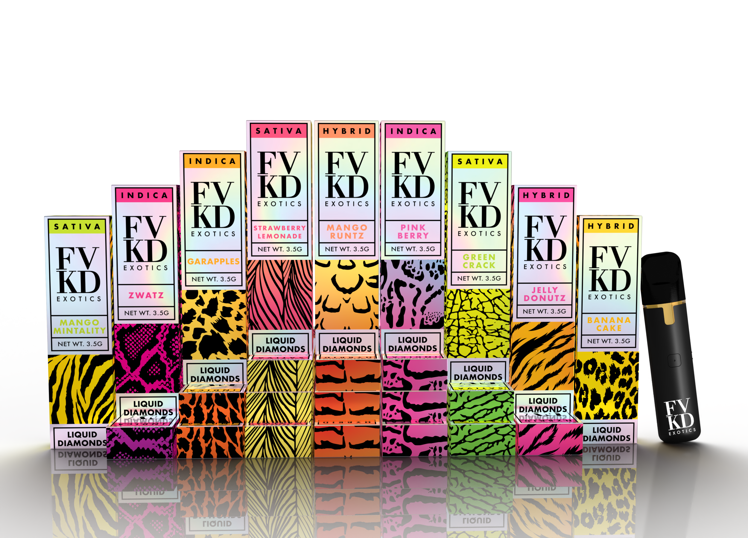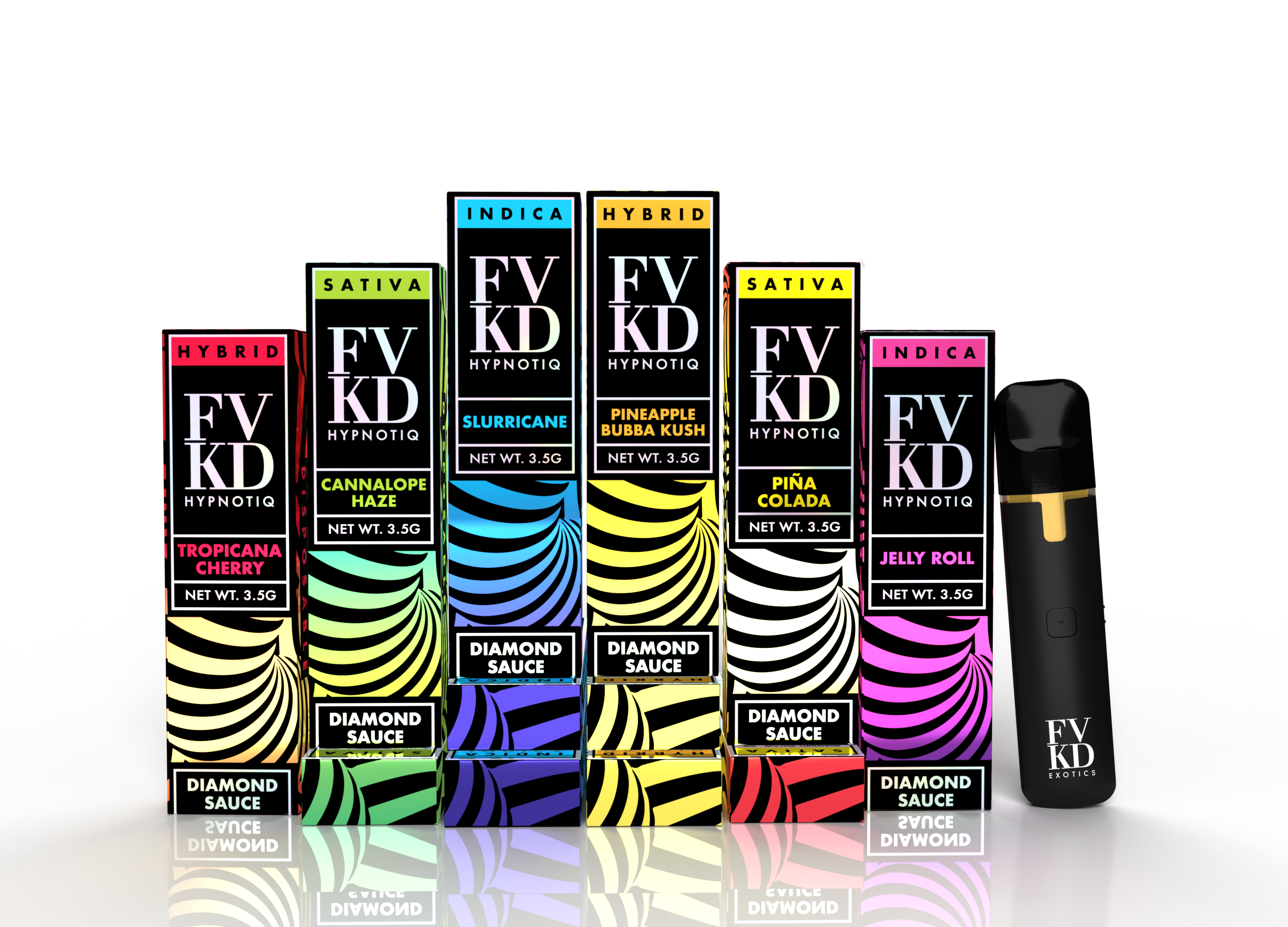 FVKD is one of the fastest growing companies in the hemp concentrate space. Unlike the muted palettes or mostly packaging that dominate the space, FVKD stands out with bright and bold packaging, unique materials, laminations, and coatings.