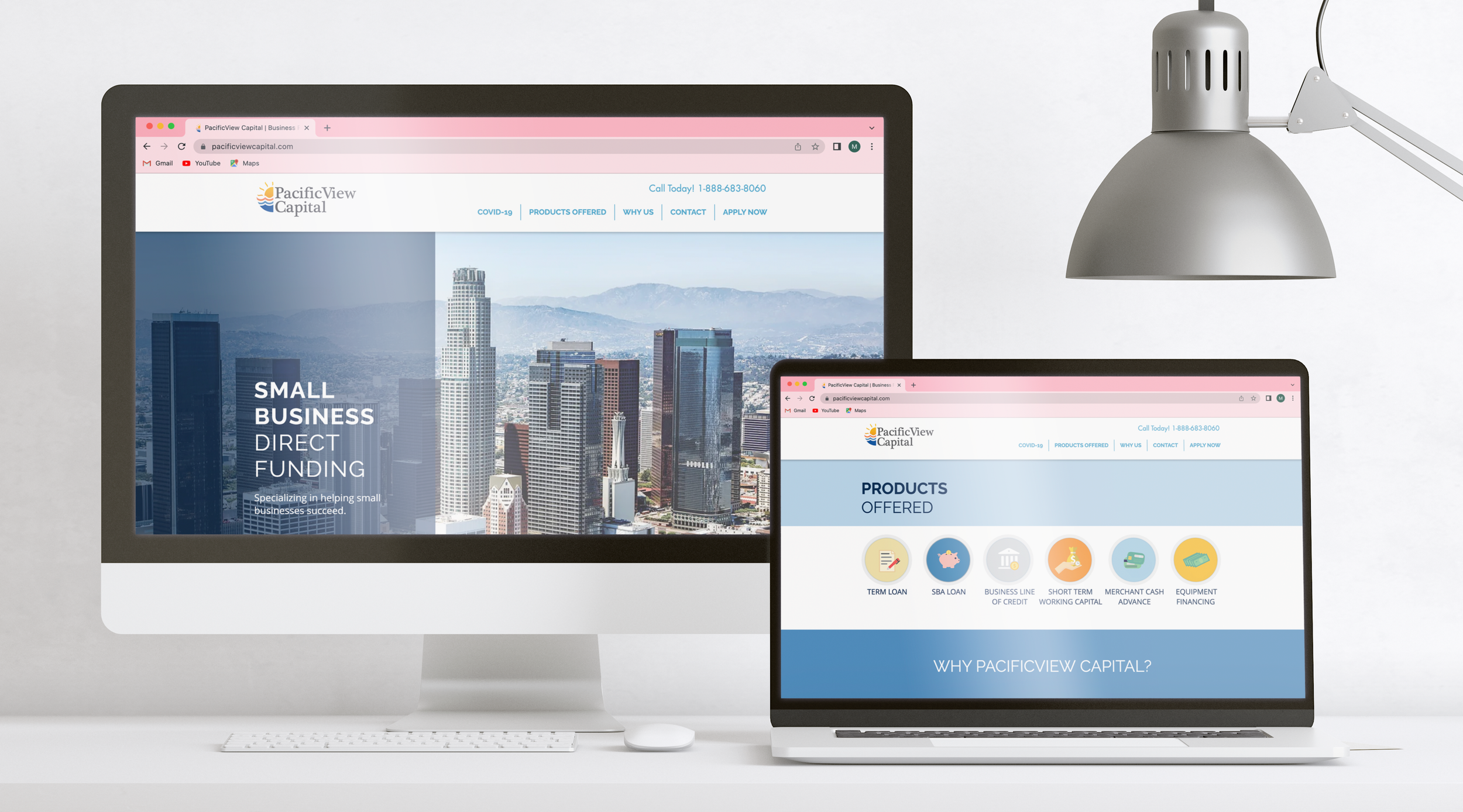 Pacific View Capital is a B2B lending brokerage founded in sunny Southern California. The look and feel of the brand reflects the background of the founders and beaches they call home.